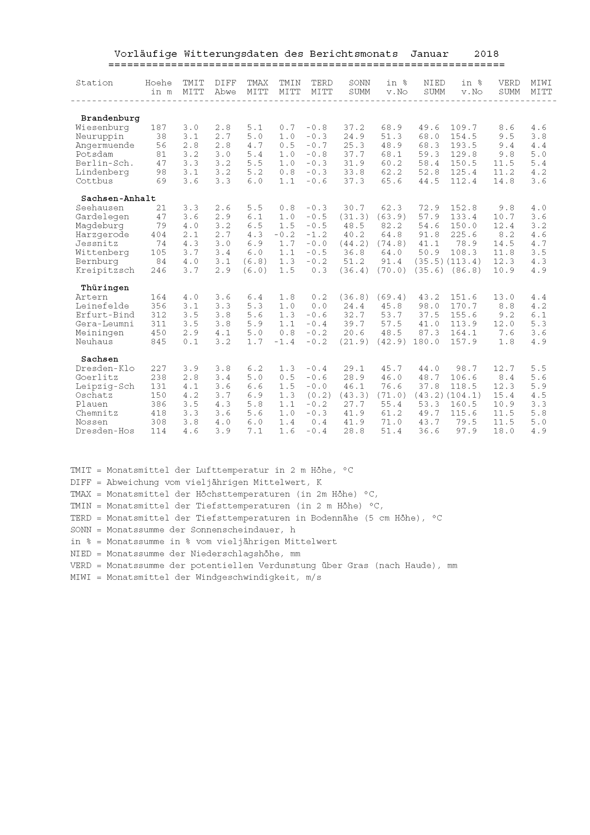 Agrarmeteorologischer Monatsbericht für Brandenburg, Sachsen-Anhalt, Thüringen und...