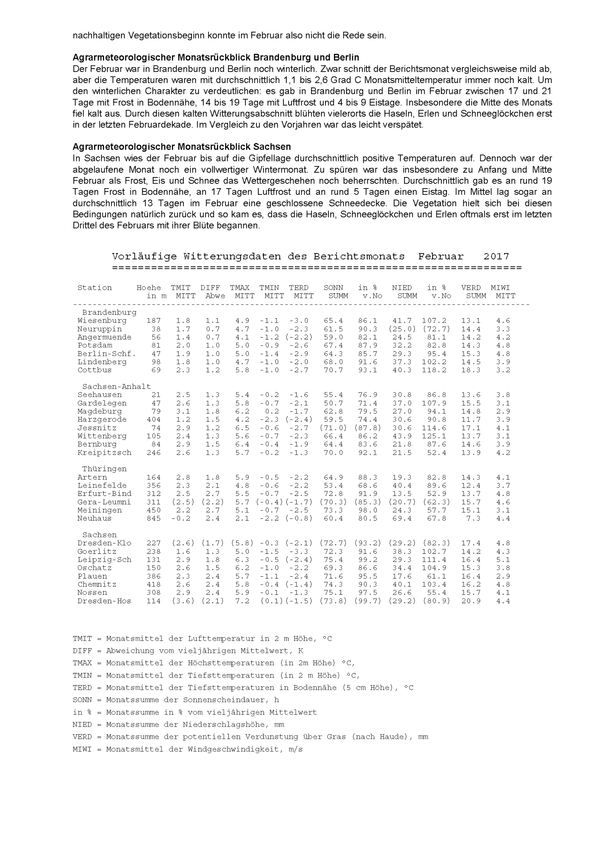 Agrarmeteorologischer Monatsbericht für Brandenburg, Sachsen-Anhalt, Thüringen und...