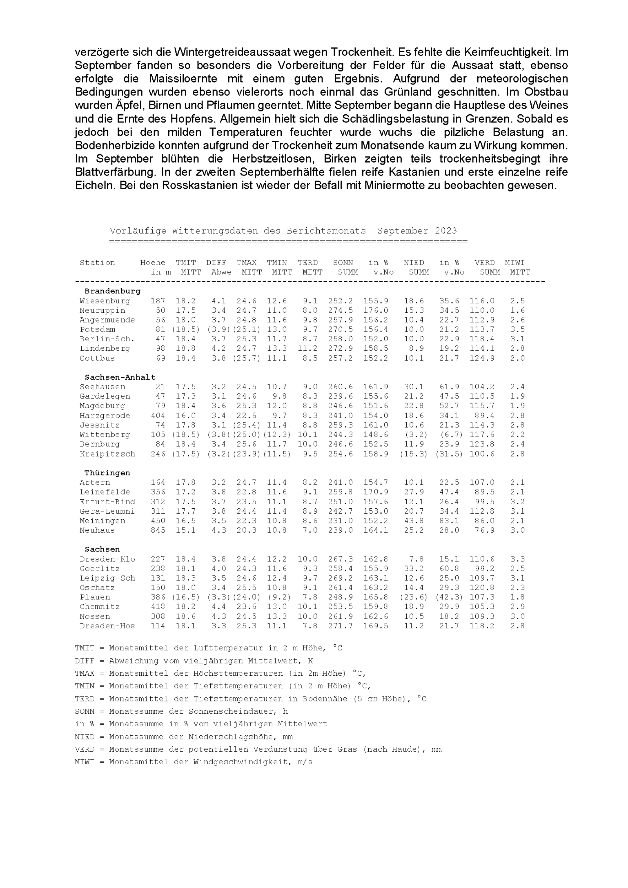 Agrarmeteorologischer Monatsbericht für Brandenburg, Sachsen-Anhalt, Thüringen und...