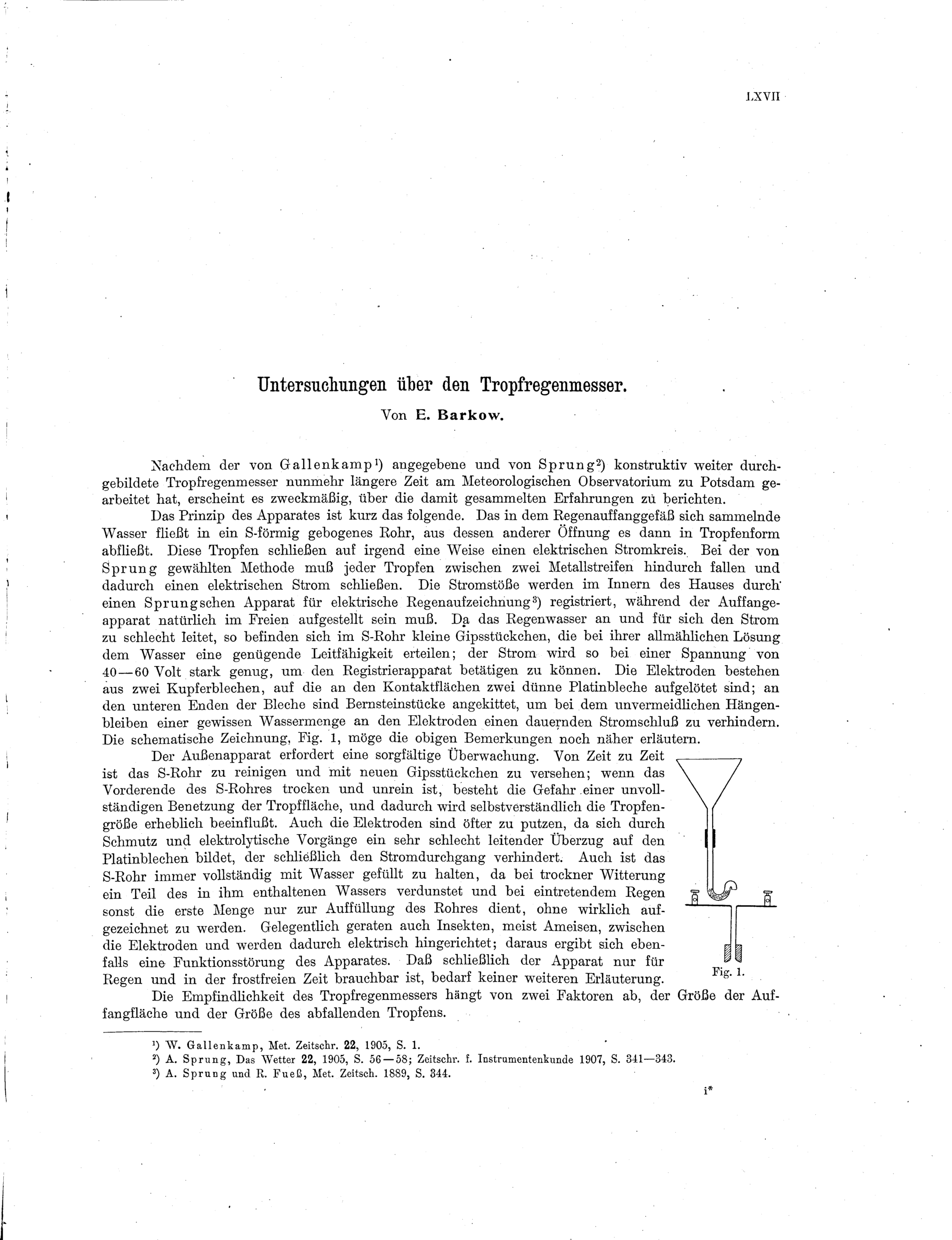 Untersuchungen über den Tropfregenmesser / E. Barkow