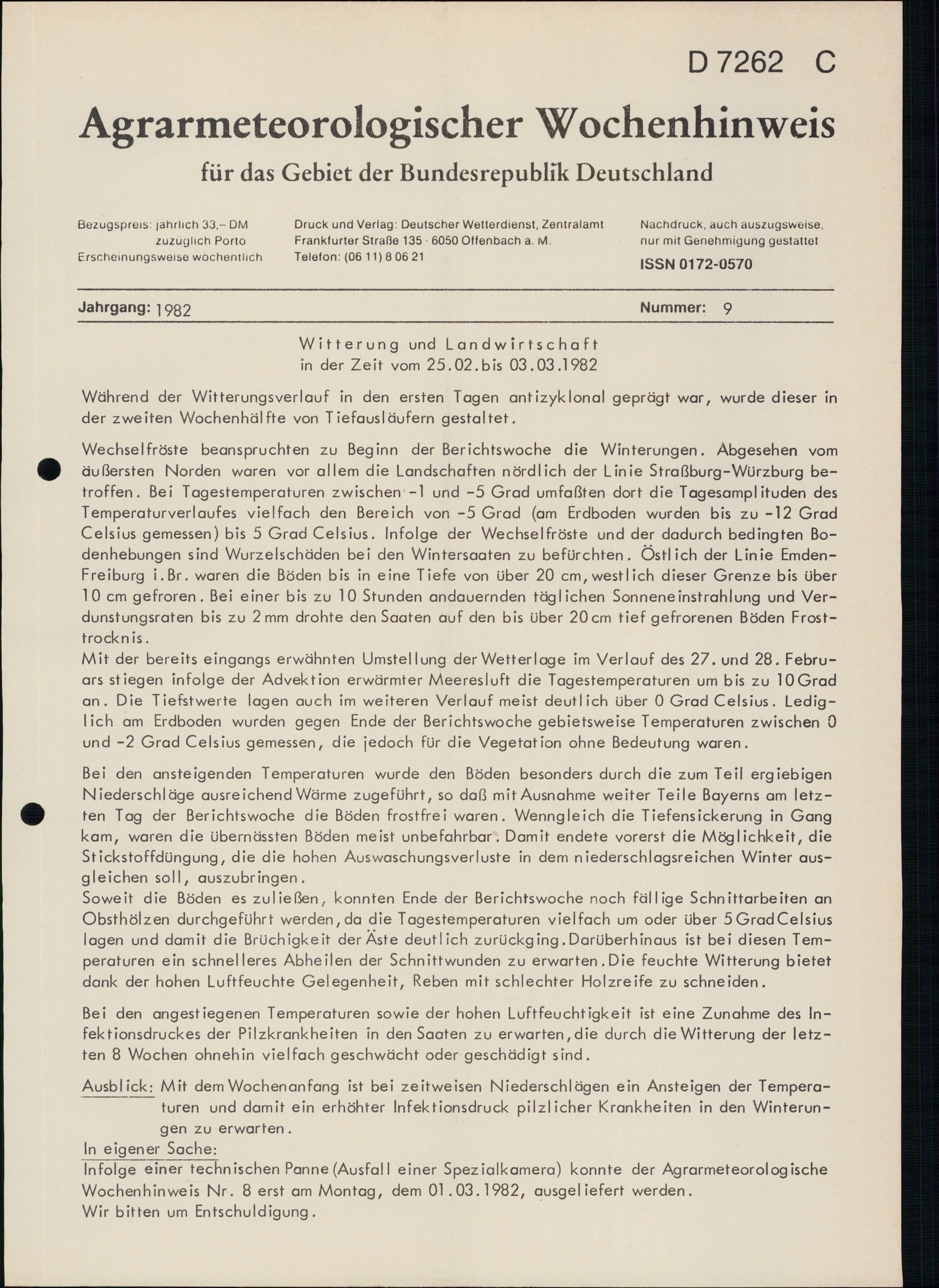 Agrarmeteorologischer Wochenhinweis für das Gebiet der Bundesrepublik Deutschlan...