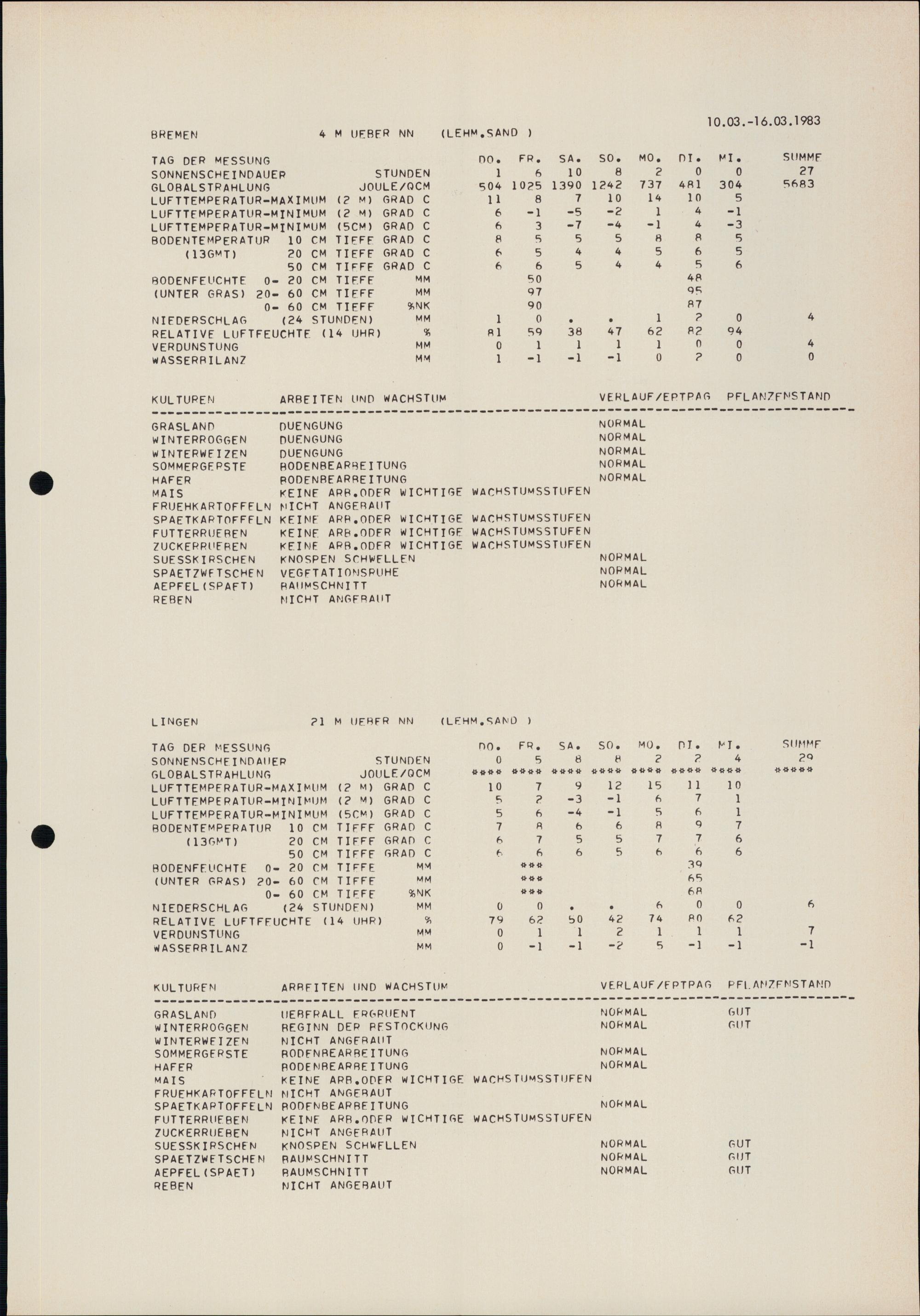 Agrarmeteorologischer Wochenhinweis für das Gebiet der Bundesrepublik Deutschlan...