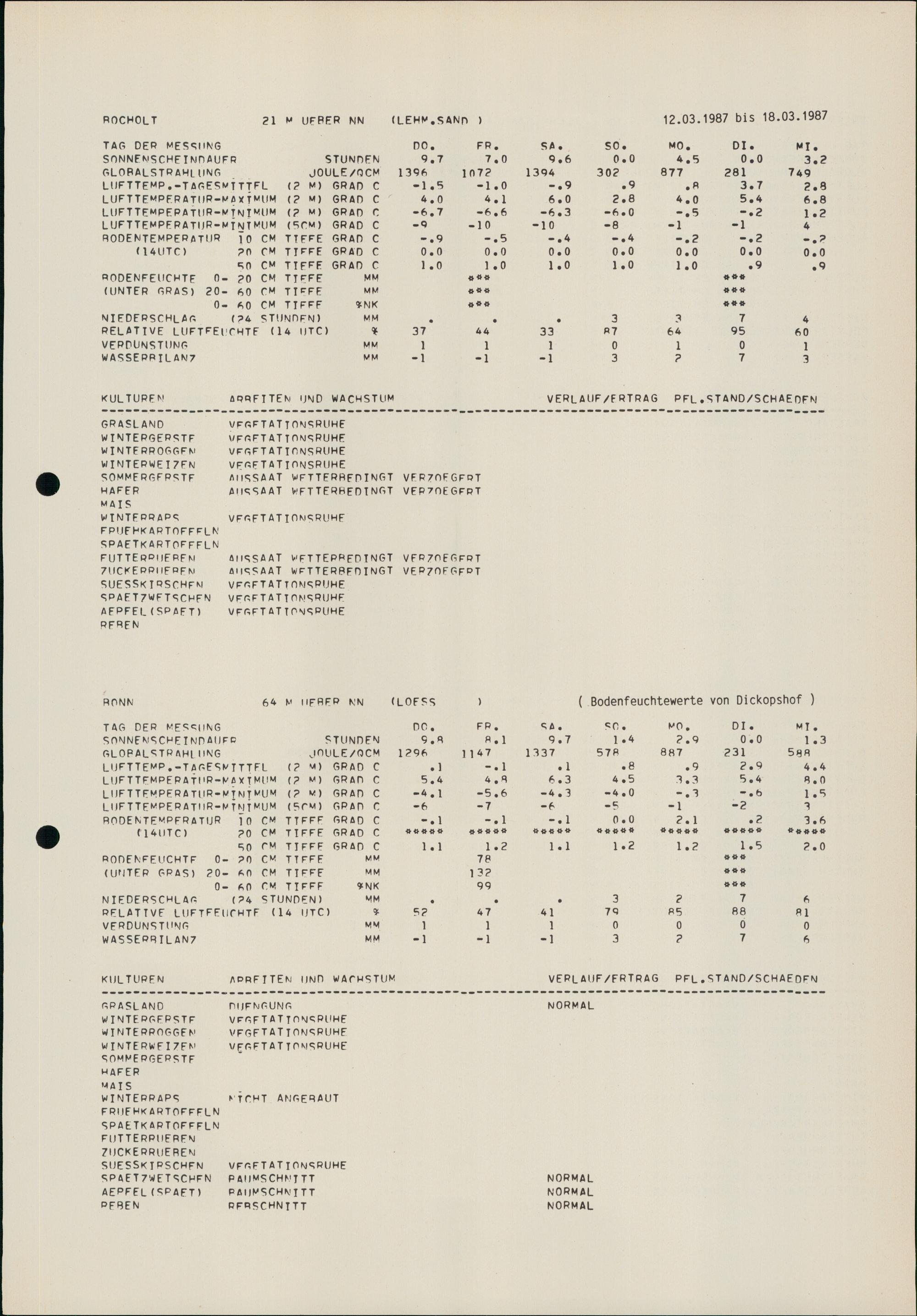 Agrarmeteorologischer Wochenhinweis für das Gebiet der Bundesrepublik Deutschlan...