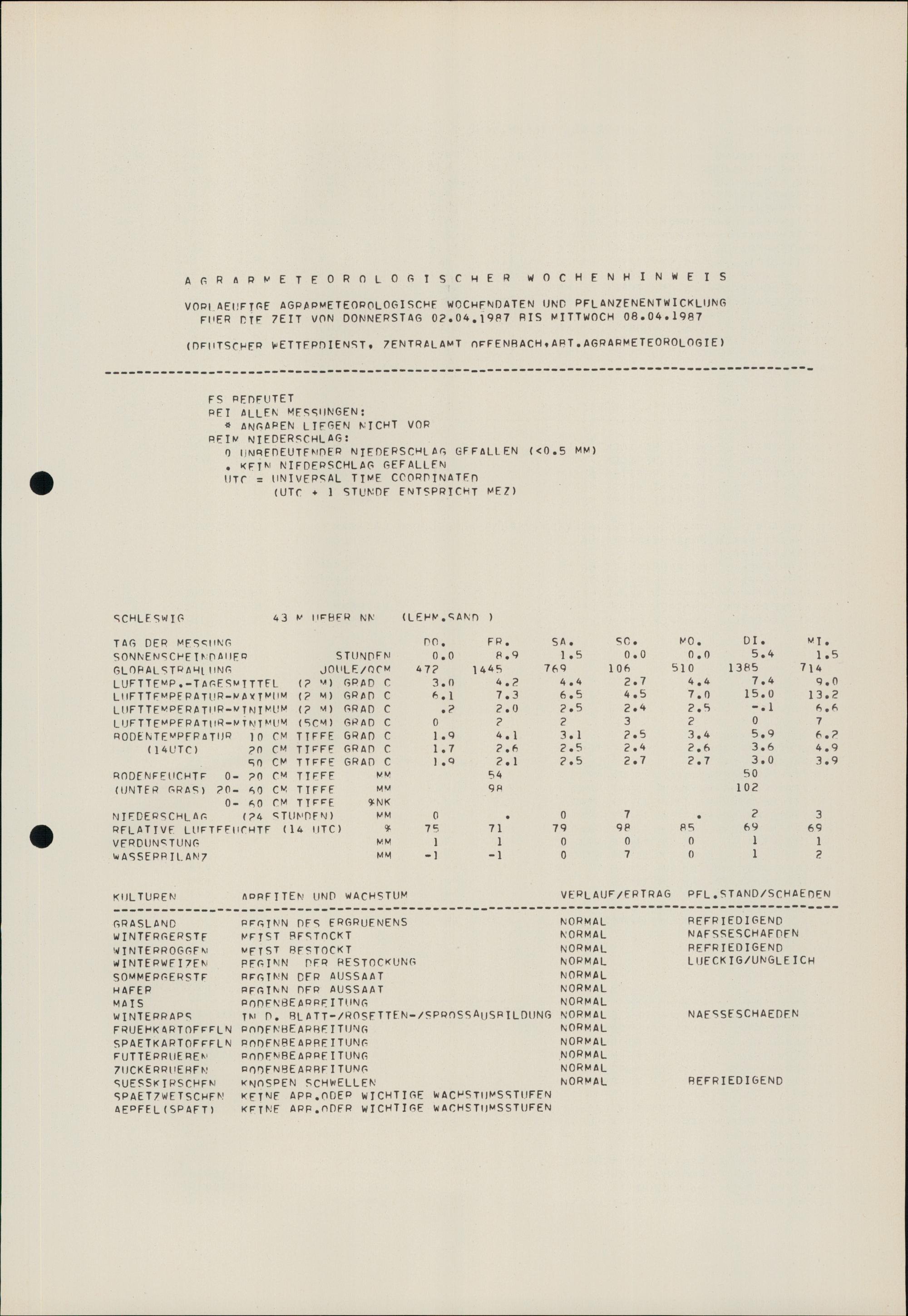 Agrarmeteorologischer Wochenhinweis für das Gebiet der Bundesrepublik Deutschlan...