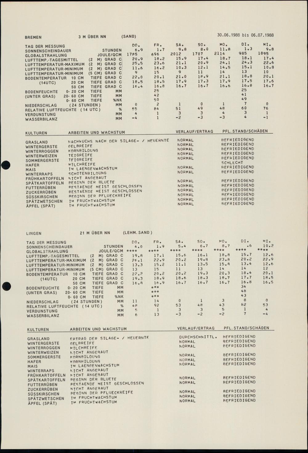 Agrarmeteorologischer Wochenhinweis für das Gebiet der Bundesrepublik Deutschlan...
