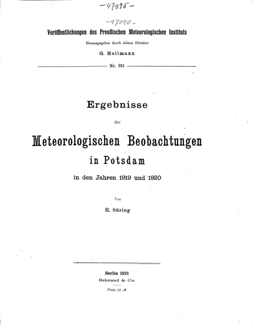 Ergebnisse der meteorologischen Beobachtungen in Potsdam