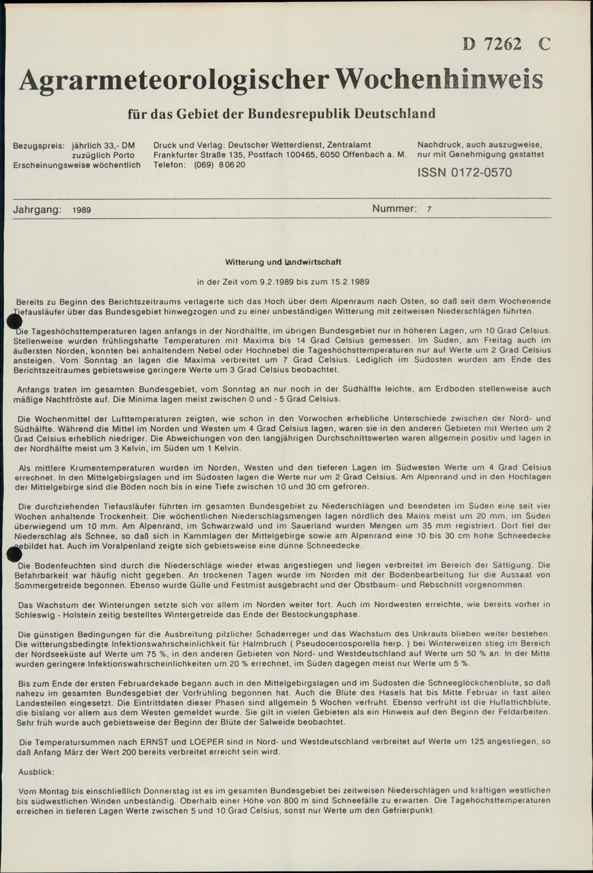 Agrarmeteorologischer Wochenhinweis für das Gebiet der Bundesrepublik Deutschlan...
