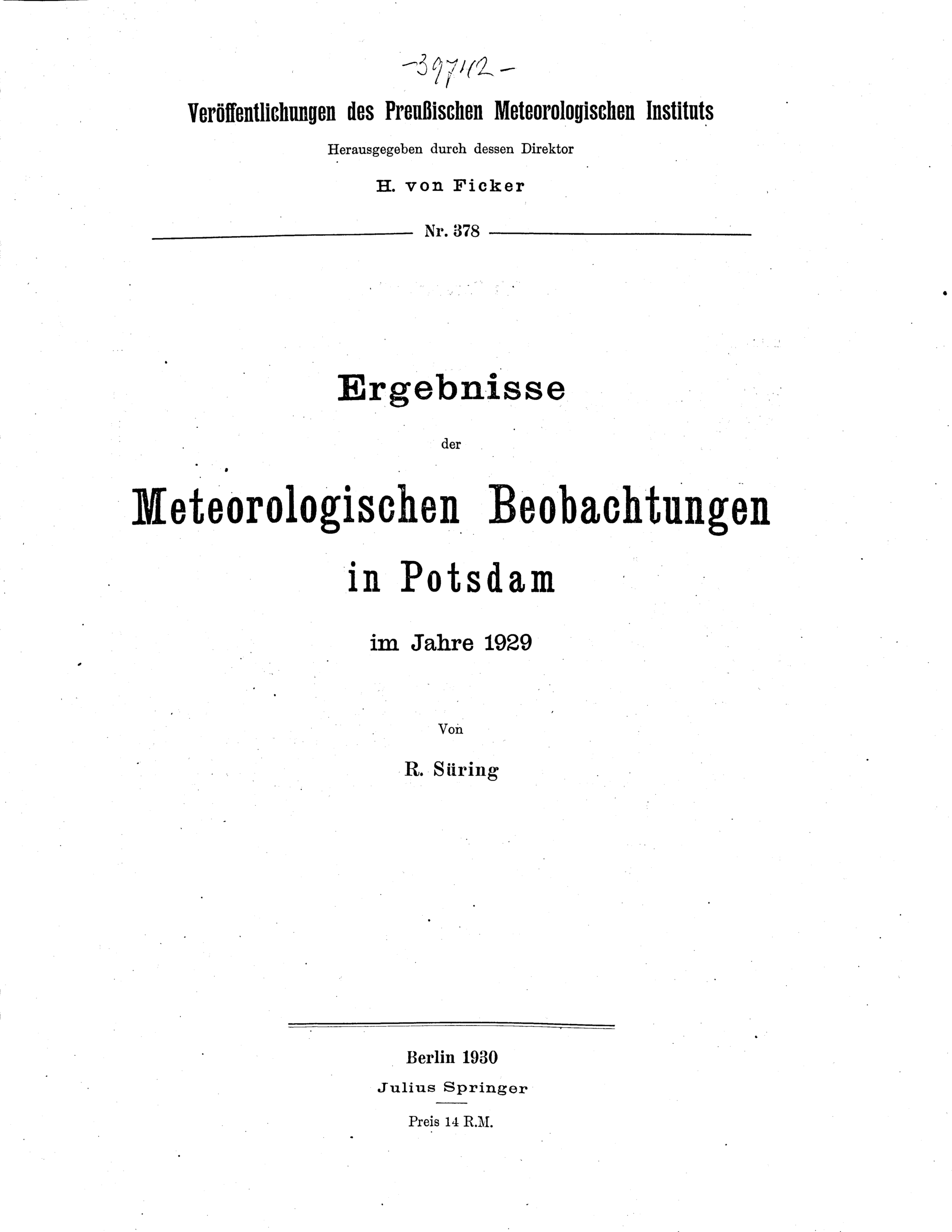 Ergebnisse der meteorologischen Beobachtungen in Potsdam