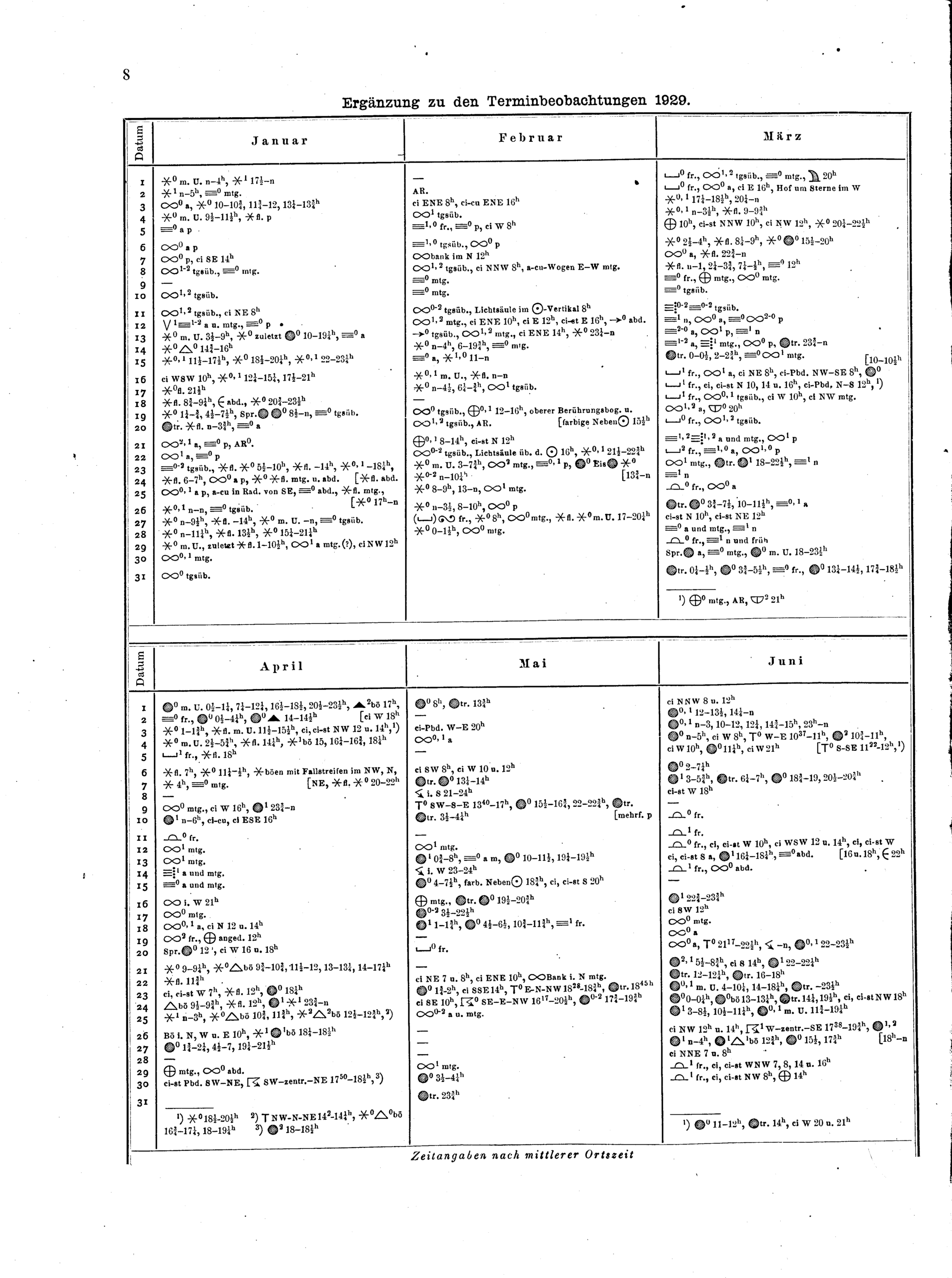 Ergänzung zu den Terminbeobachtungen