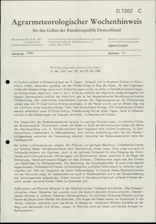 Agrarmeteorologischer Wochenhinweis für das Gebiet der Bundesrepublik Deutschlan...