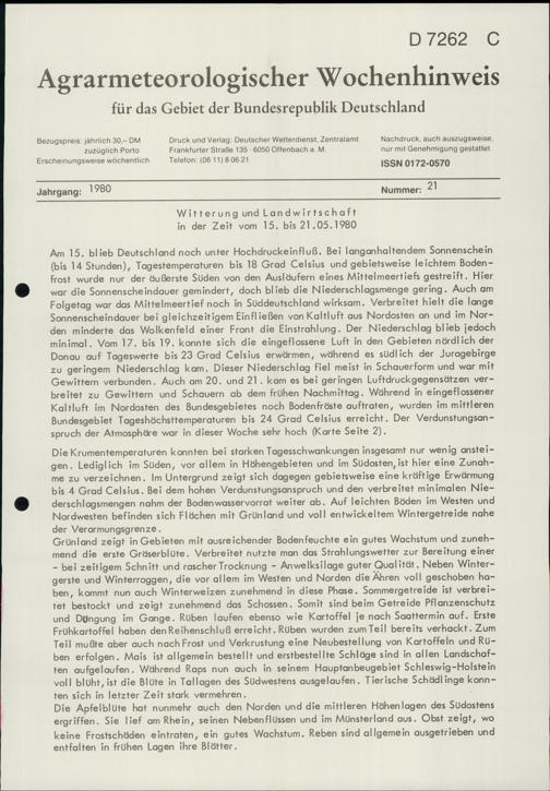 Agrarmeteorologischer Wochenhinweis für das Gebiet der Bundesrepublik Deutschlan...