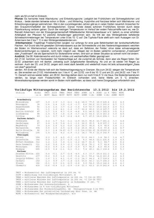 Agrarmeteorologischer Wochenbericht für Sachsen, Sachsen-Anhalt, Thüringen und B...
