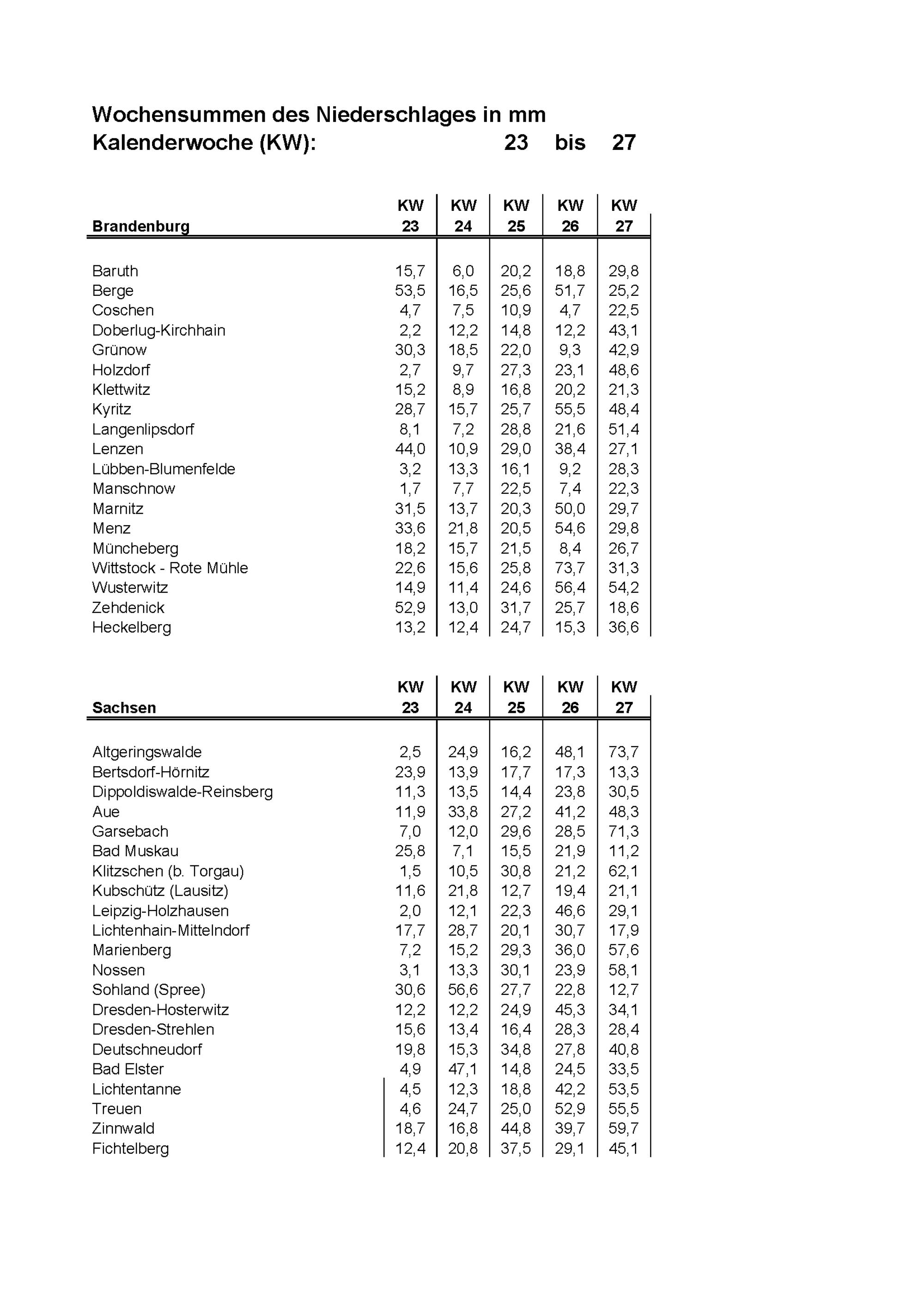 Agrarmeteorologischer Wochenbericht für Sachsen, Sachsen-Anhalt, Thüringen und B...