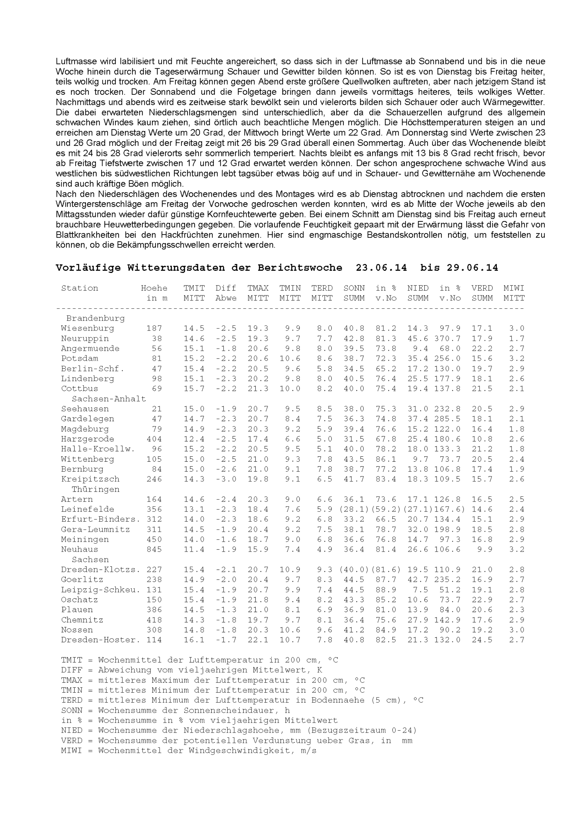 Agrarmeteorologischer Wochenbericht für Sachsen, Sachsen-Anhalt, Thüringen und B...