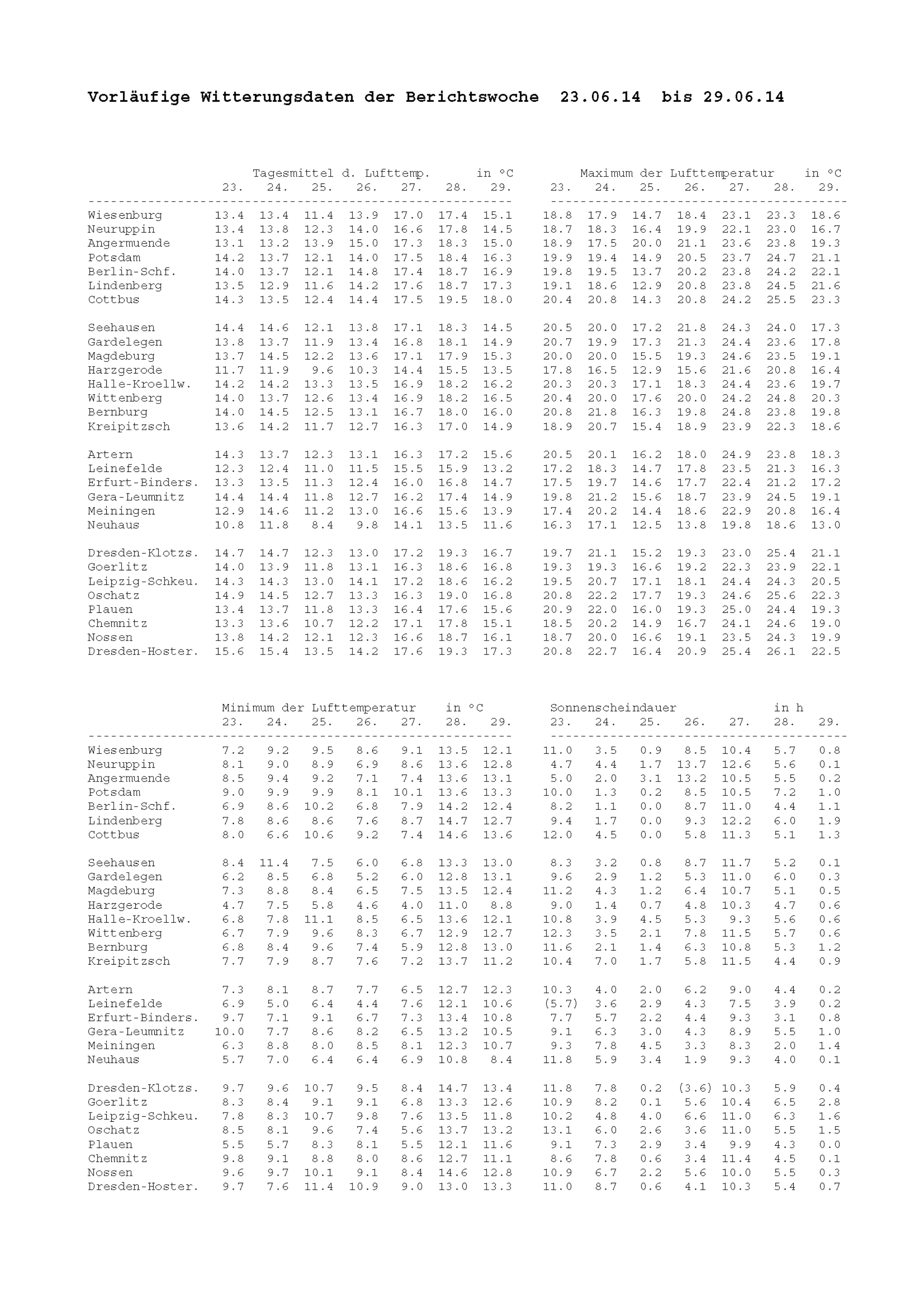 Agrarmeteorologischer Wochenbericht für Sachsen, Sachsen-Anhalt, Thüringen und B...
