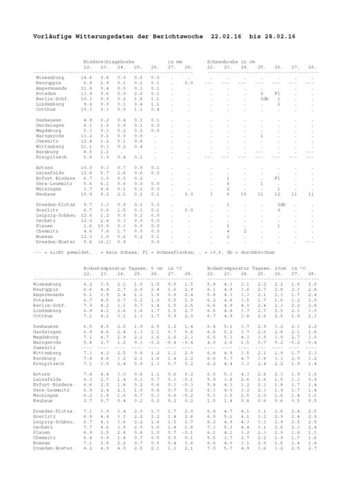 Agrarmeteorologischer Wochenbericht für Sachsen, Sachsen-Anhalt, Thüringen und B...