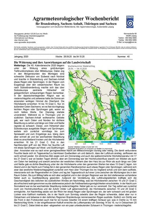 Agrarmeteorologischer Wochenbericht für Sachsen, Sachsen-Anhalt, Thüringen und B...