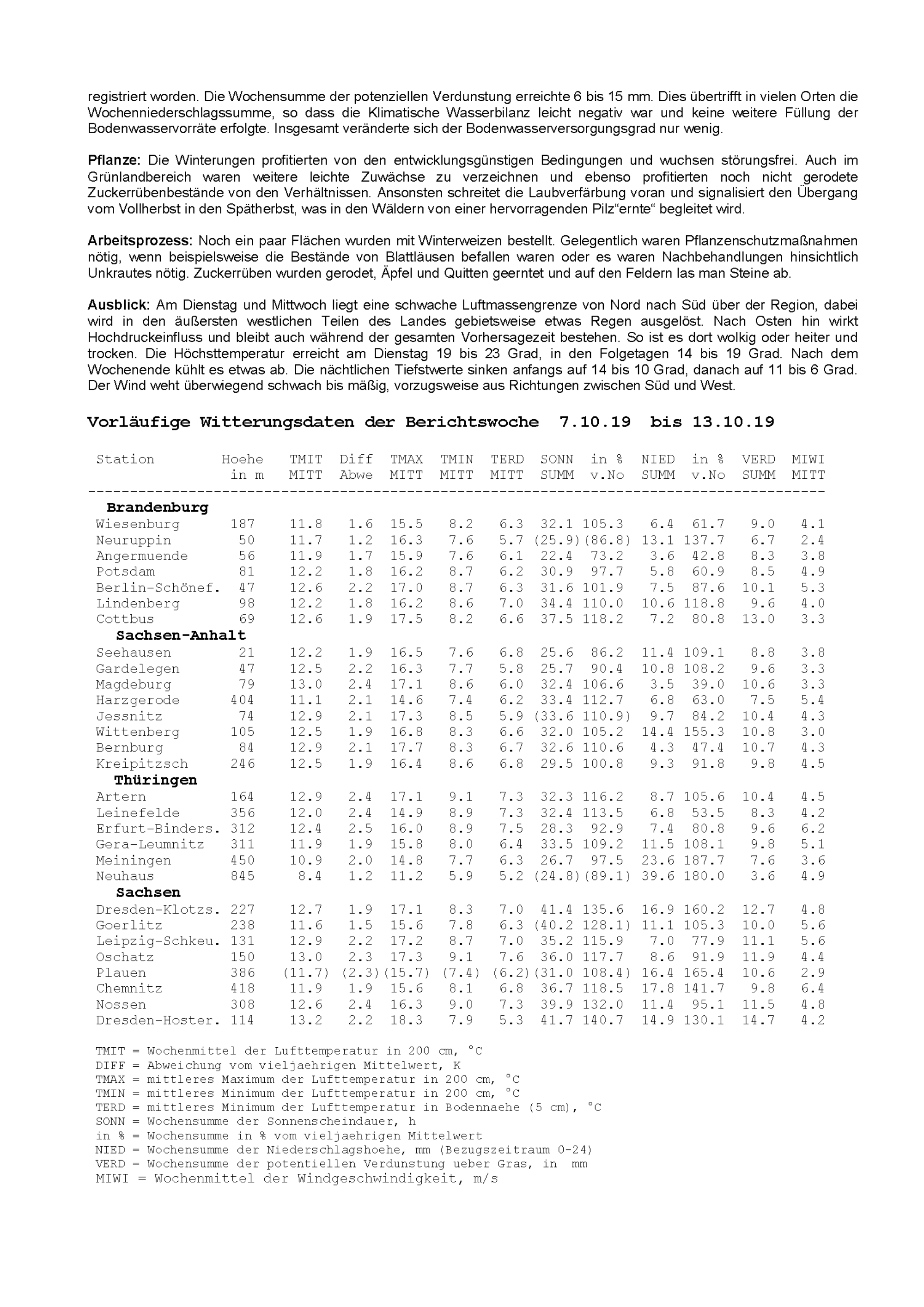 Agrarmeteorologischer Wochenbericht für Sachsen, Sachsen-Anhalt, Thüringen und B...