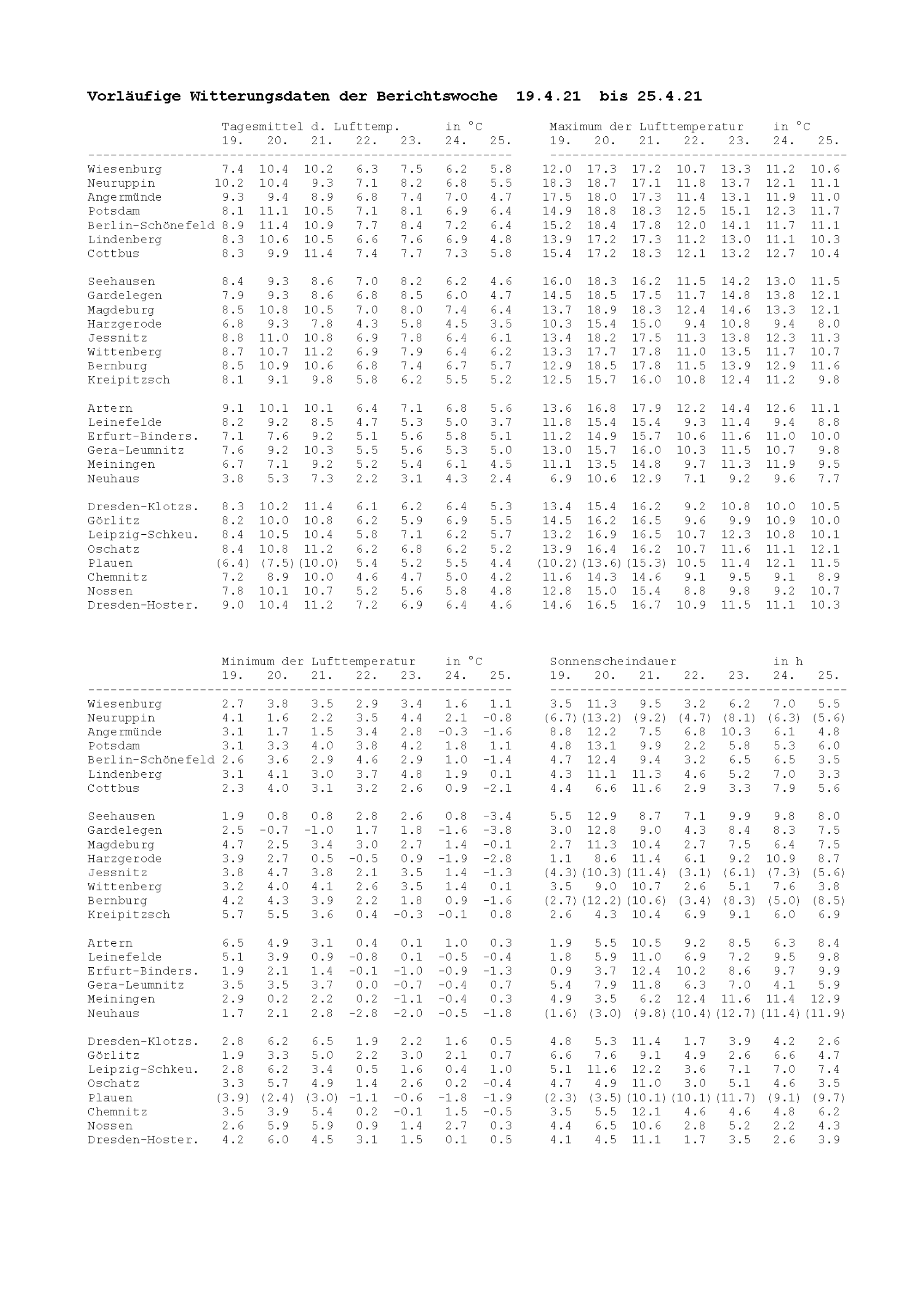 Agrarmeteorologischer Wochenbericht für Sachsen, Sachsen-Anhalt, Thüringen und B...