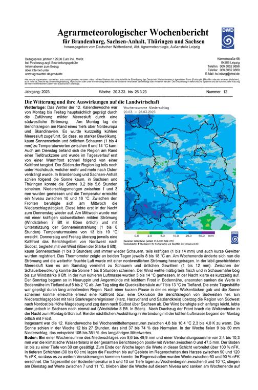 Agrarmeteorologischer Wochenbericht für Sachsen, Sachsen-Anhalt, Thüringen und B...