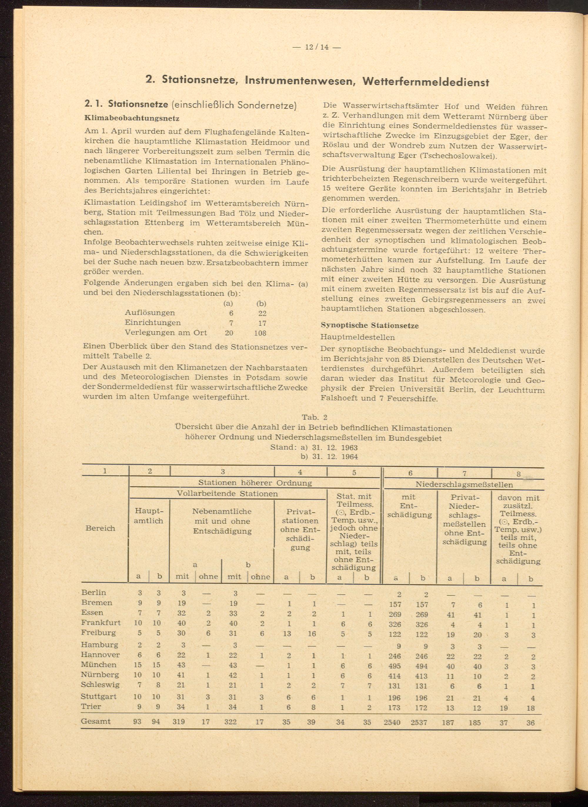 2. Stationsnetze, Instrumentenwesen, Wetterfernmeldedienst