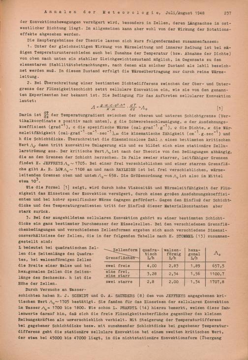 Bemerkungen zur Zellularkonvektion im Meer und in der Atmosphäre und die Beurteilung...