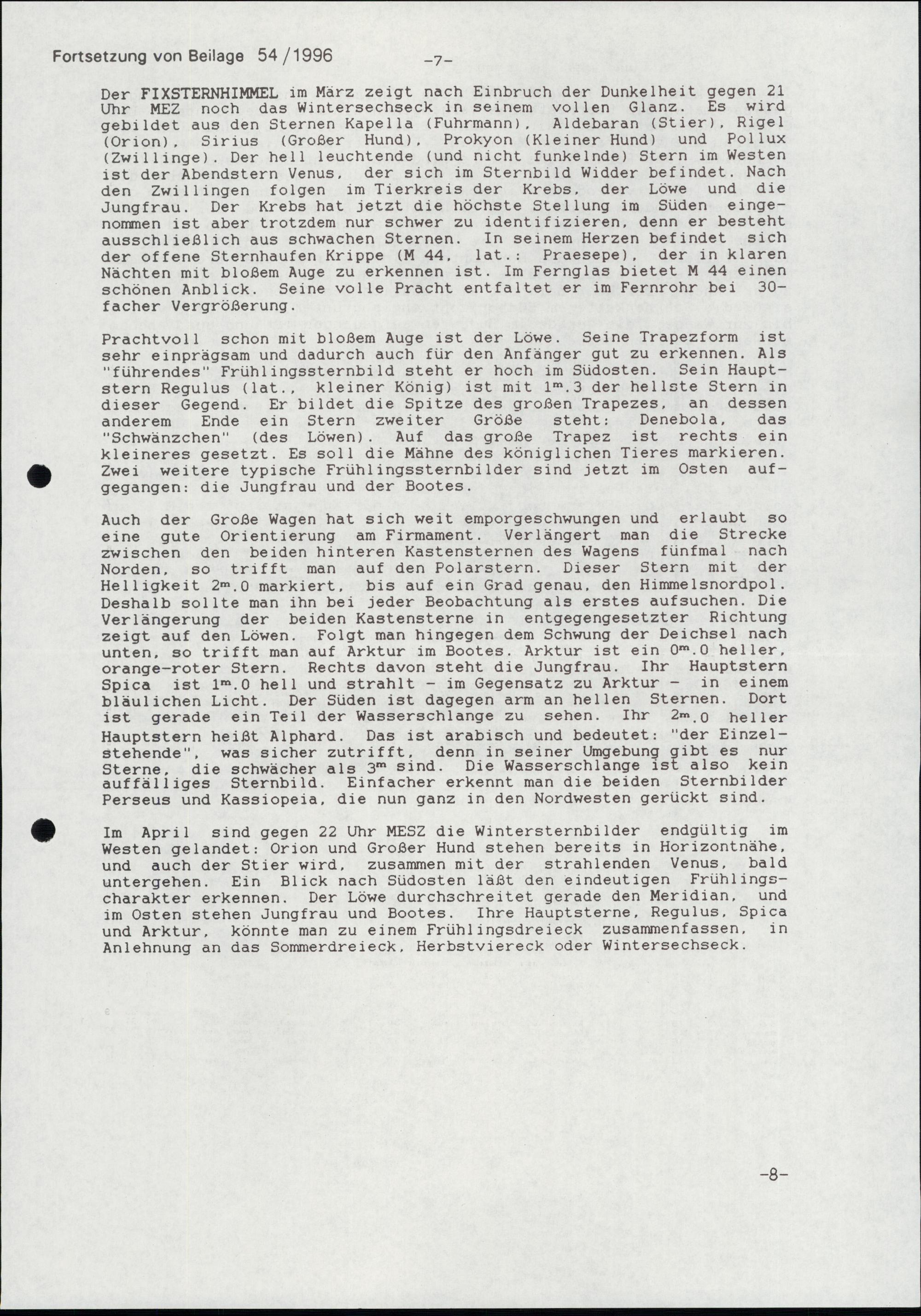 Der Sternenhimmel im Frühling 1996