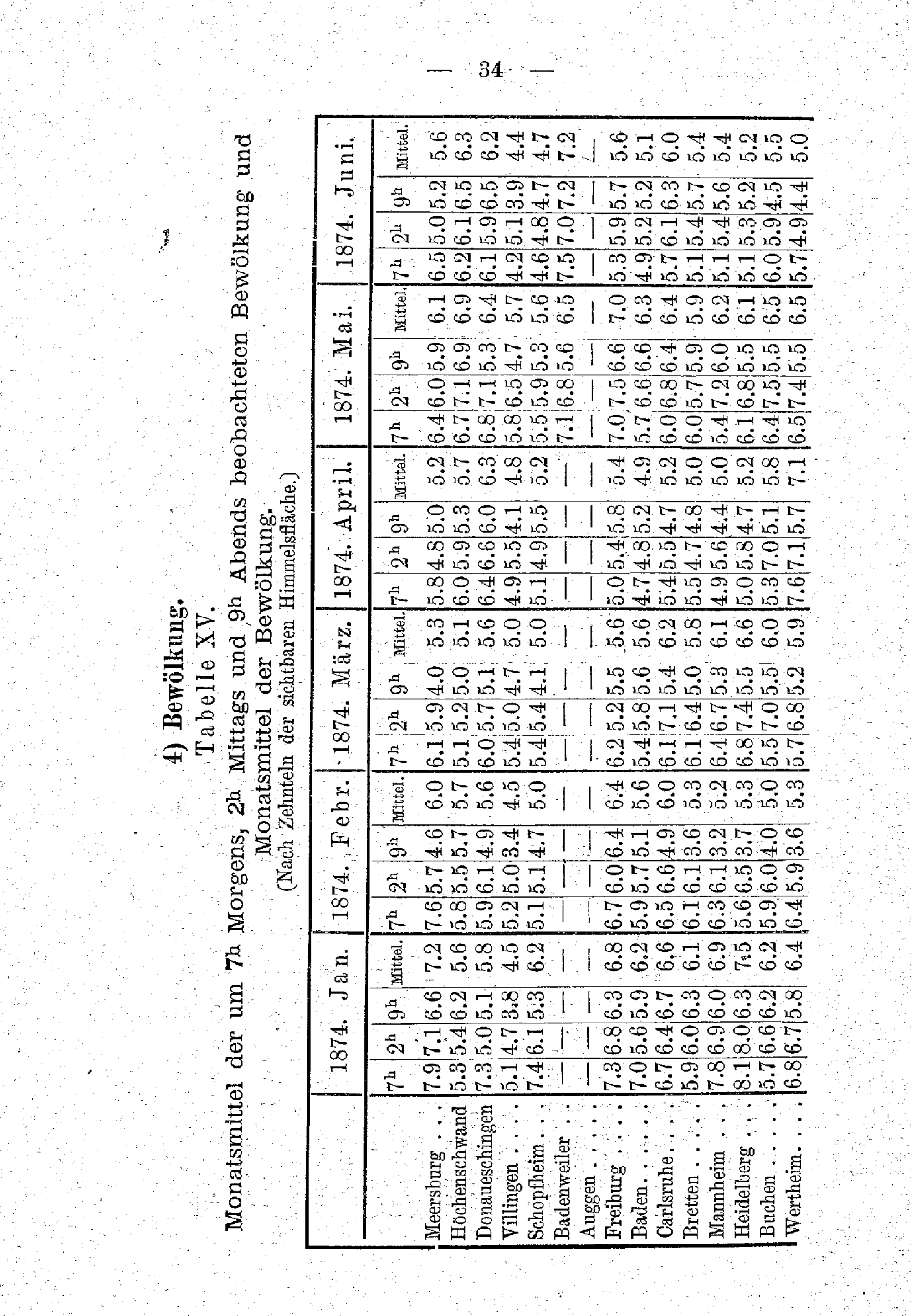 9. Vergleichung der Mittelwerthe des Jahres 1874 mit mehrjährigen
