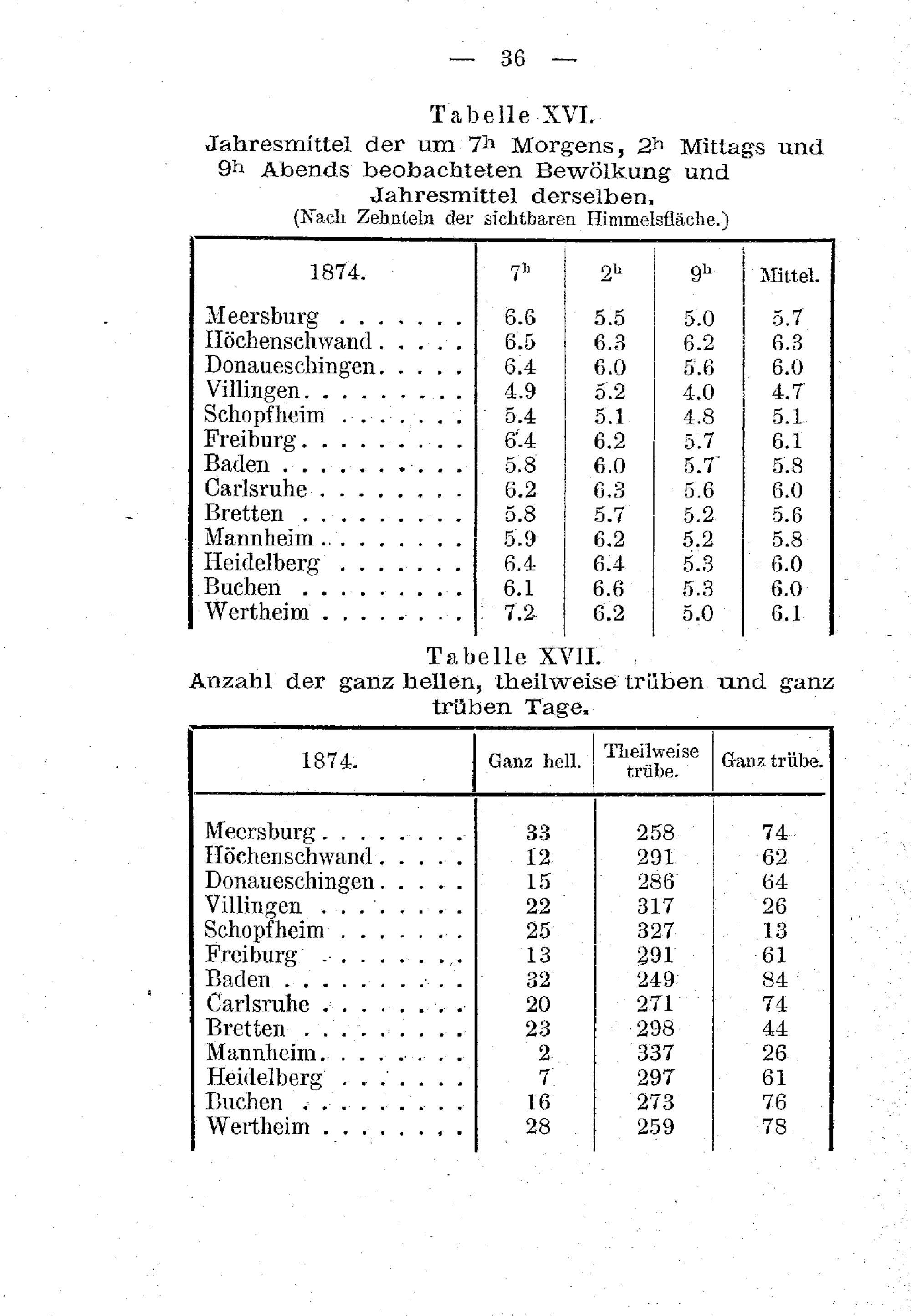 9. Vergleichung der Mittelwerthe des Jahres 1874 mit mehrjährigen
