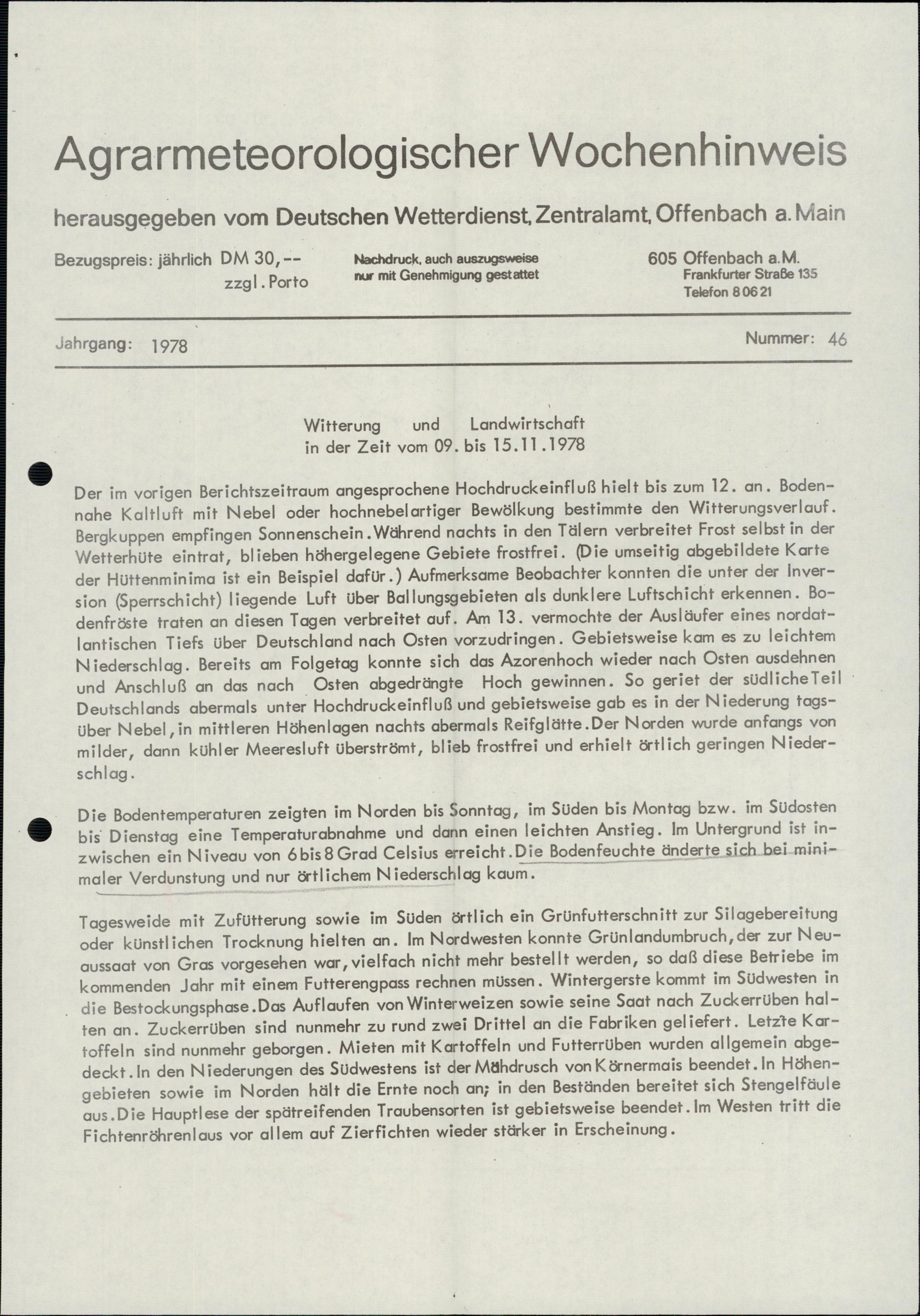 Agrarmeteorologischer Wochenhinweis