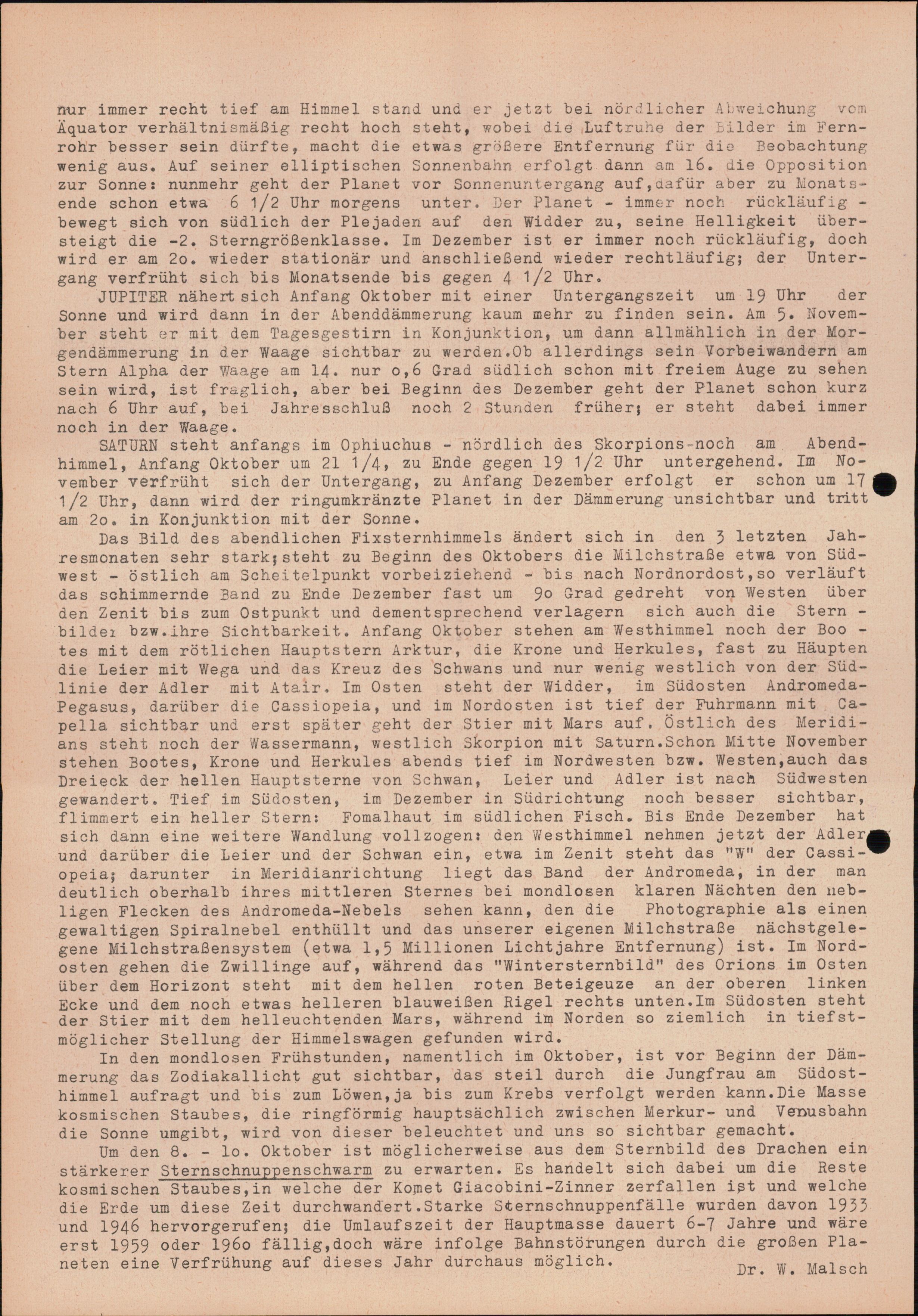 Vom Sternenhimmel im Oktober, November und Dezember 1958