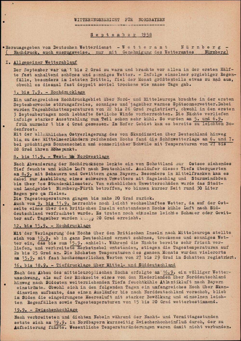 Schnellbericht des Deutschen Wetterdienstes für Nordbayern