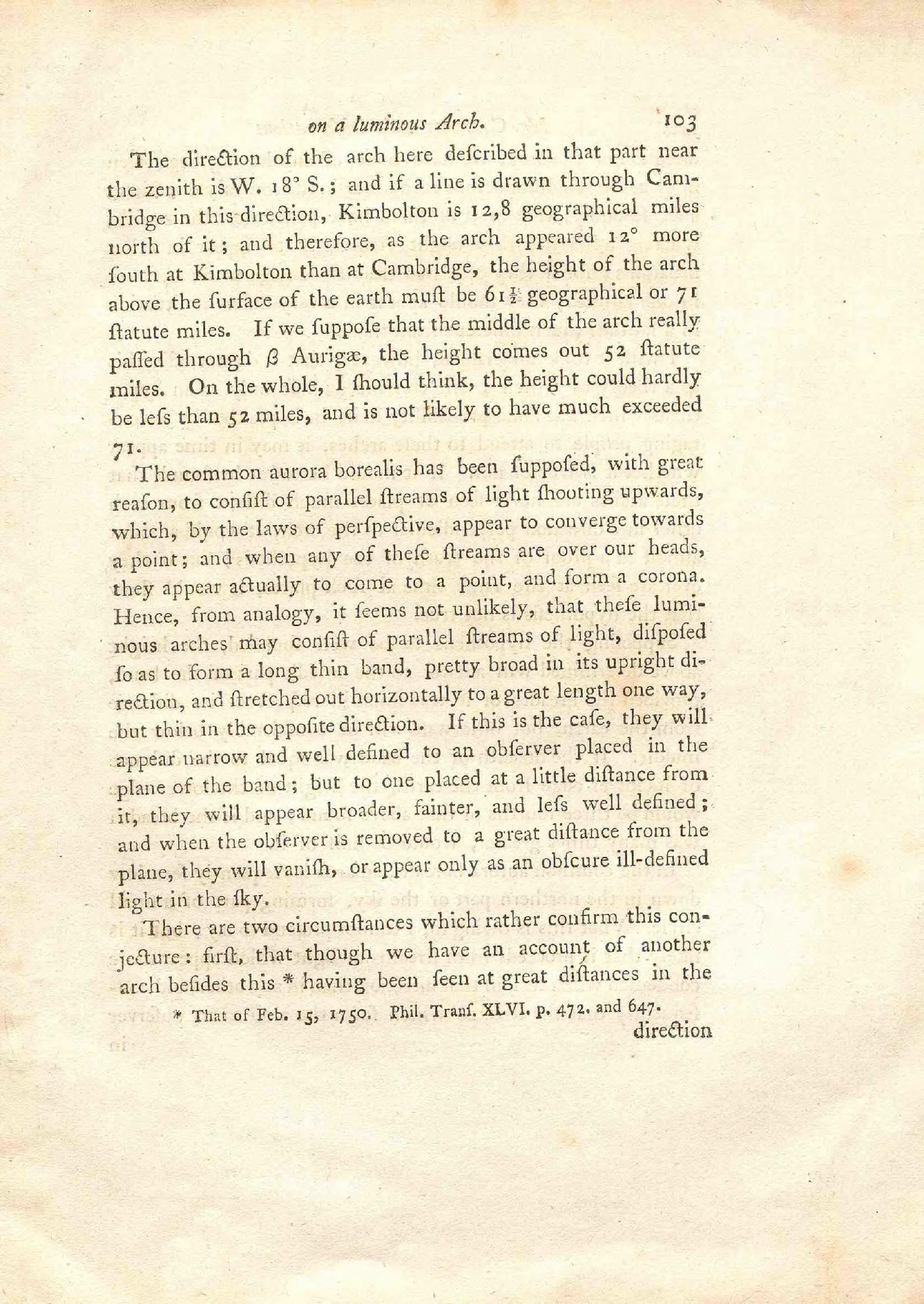 On the Height of the luminous Arch which was seen on Feb. 23, 1784 / by Henry Cavendish, Esq. F.R.S. and A.S.