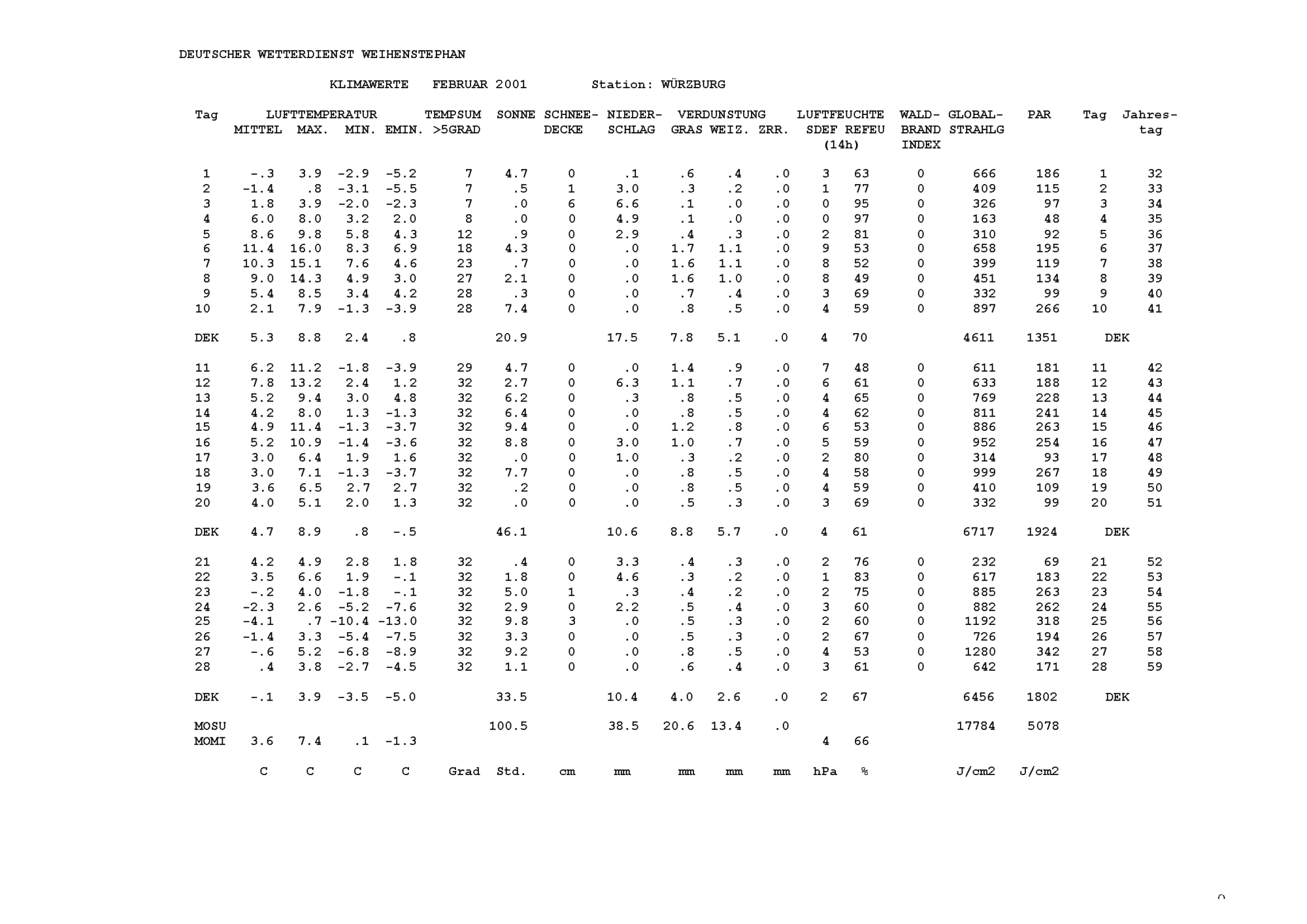 Klimawerte Würzburg
