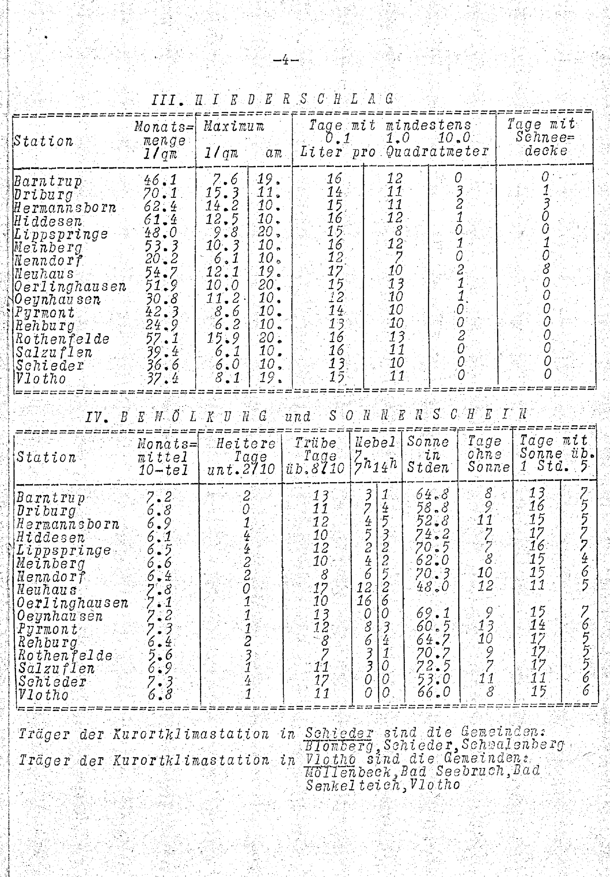 Übersicht über die Witterung im ... im Kurortklimakreis Westfalen-Niedersachsen