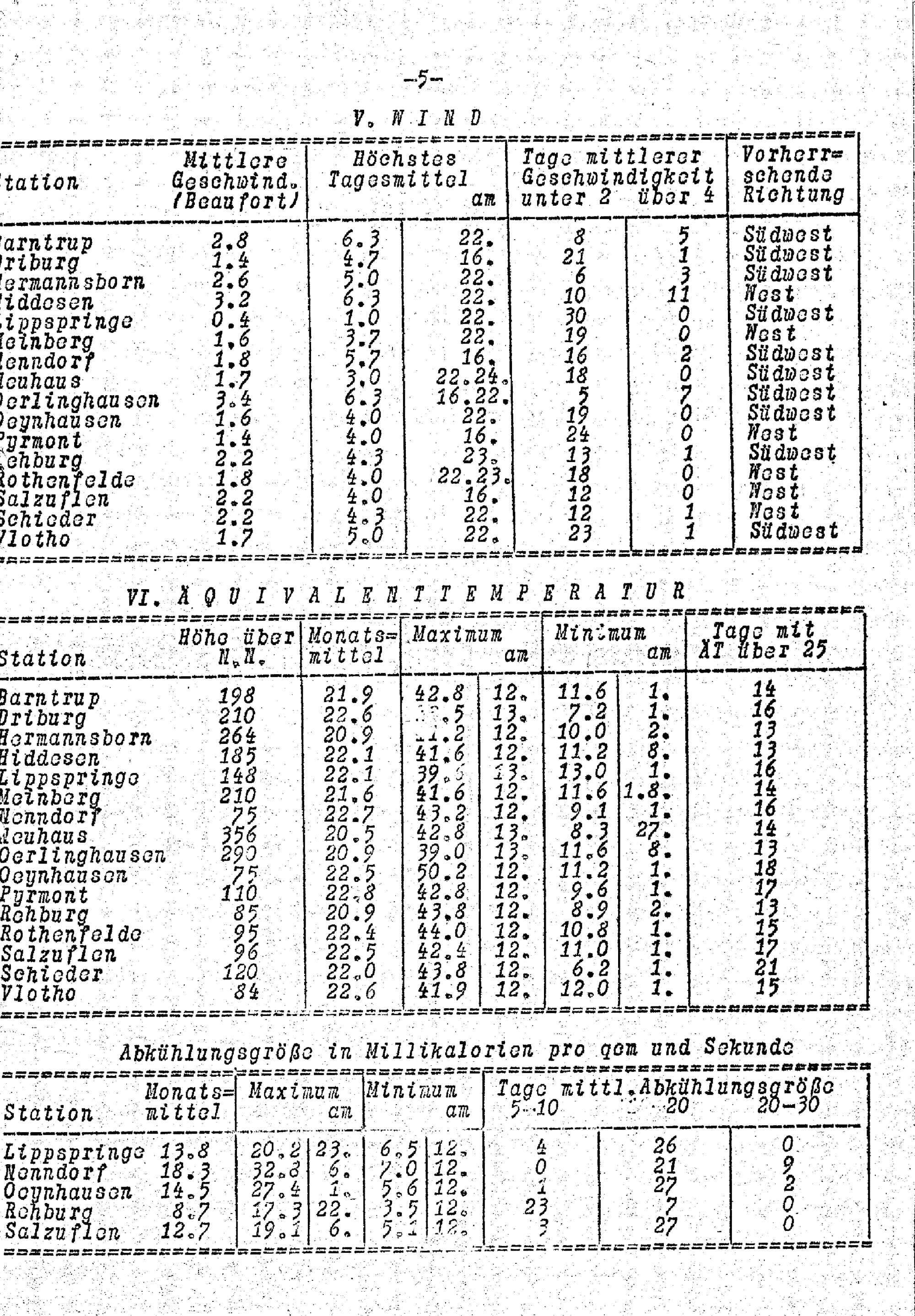 Übersicht über die Witterung im ... im Kurortklimakreis Westfalen-Niedersachsen