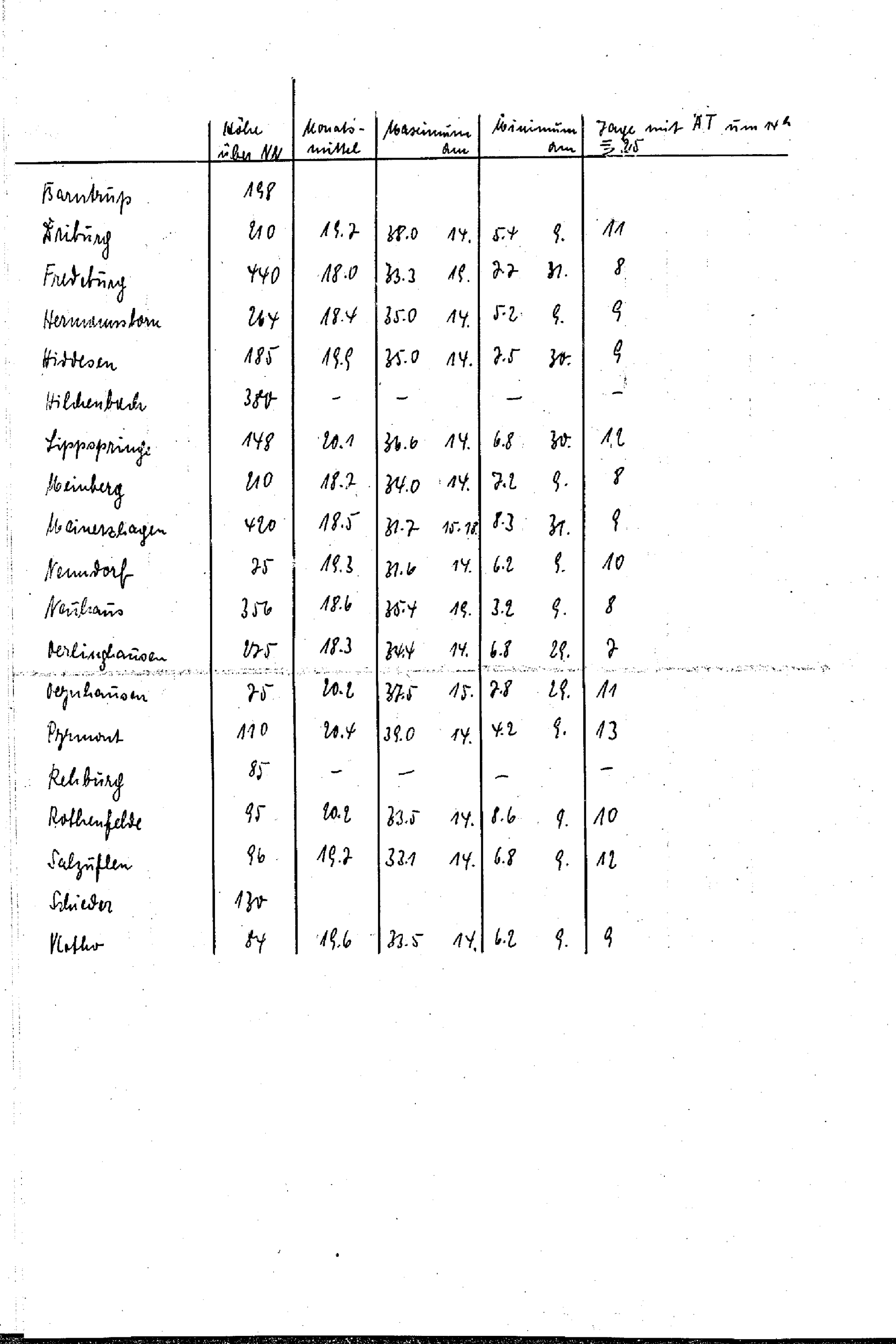 Übersicht über die Witterung im ... im Kurortklimakreis Westfalen-Niedersachsen