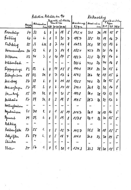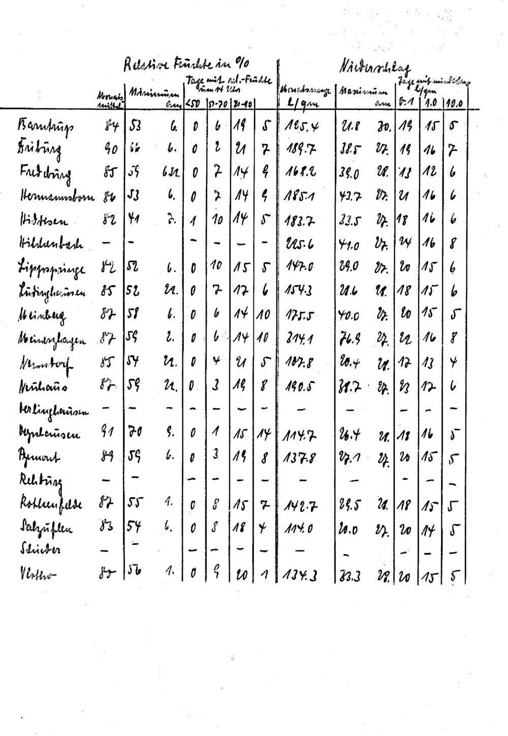 Übersicht über die Witterung im ... im Kurortklimakreis Westfalen-Niedersachsen