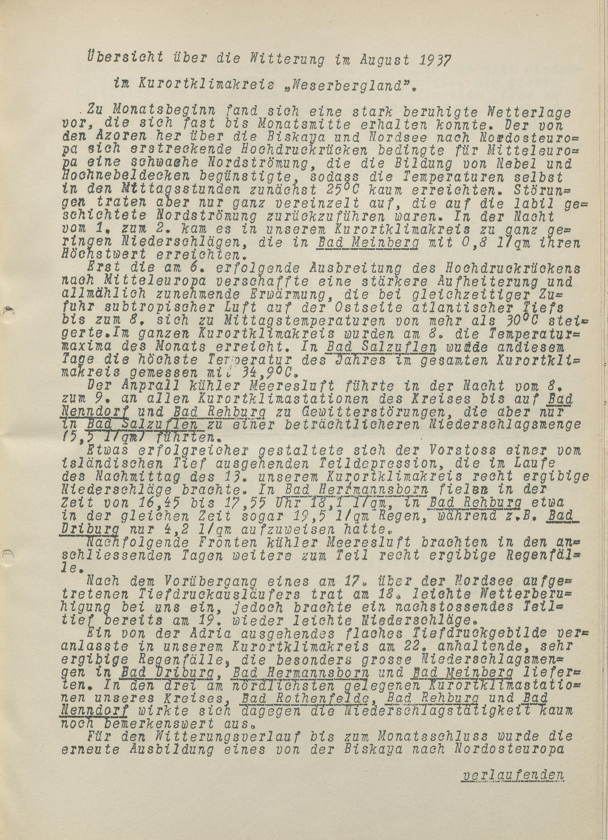 Übersicht über die Witterung im ... im Kurortklimakreis "Weserbergland"
