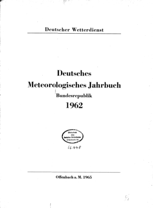 Deutsches meteorologisches Jahrbuch / Deutscher Wetterdienst. Offenbach, M. : [Verlag nicht ermittelbar] ; Bad Kissingen : [Verlag nicht ermittelbar], 1953(1955) - 1991(1993), 1955-1993 : (1962). / CC-BY-Lizenz (4.0)