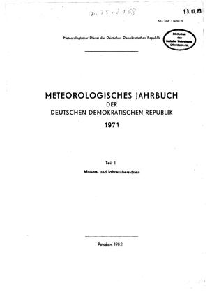 Meteorologisches Jahrbuch der Deutschen Demokratischen Republik / Meteorologischer Dienst der Deutschen Demokratischen Republik. Potsdam : [Verlag nicht ermittelbar], 1961(1973) - 1988(1990), 1973-1990 : (1971). / CC-BY-Lizenz (4.0)