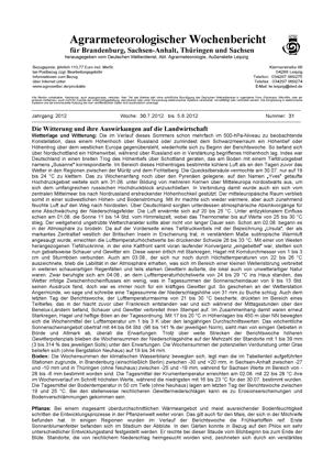Agrarmeteorologischer Wochenbericht für Sachsen, Sachsen-Anhalt, Thüringen und Brandenburg / Deutscher Wetterdienst, Geschäftsfeld Landwirtschaft. Offenbach am Main : DWD, 2003- : (2012) H. August. / CC-BY-Lizenz (4.0)